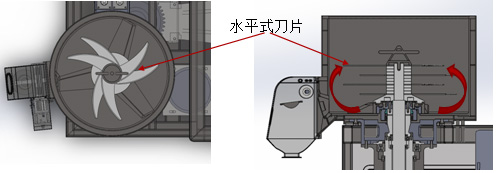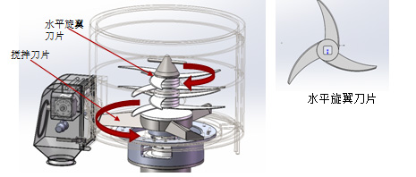 采用了多片大面積水平旋翼式高速切割刀片,極大的增加的切割的效率和粉末接觸面積。